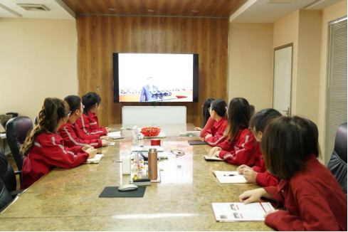 青岛三山组织党员及先进员工一同学习党的二十大会议主要内容。