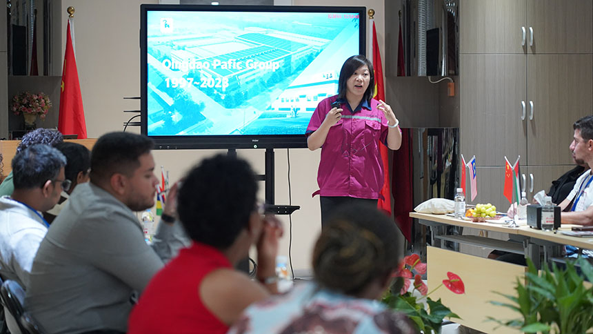 10月17日上午,经由山东大学校友会推荐,联合国训练研究所承办,国家商务部援外培训项目—“一带一路”智能制造技术应用与管理研修班,共有智利、马来西亚、毛里求斯、缅甸、巴拿马等7个国家、近20名政府官员到青岛三山集团参观交流,包含大学、贸易商业发展旅游部、工业发展合作社部、工业部、科学与技术部等成员组成。