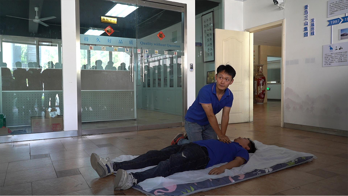 心肺复苏的及时施行可以挽救生命,降低发病者的死亡率,应该是每个人都掌握的一项必备技能。于皓阳通过对“模拟人”实施心肺复苏抢救,为员工演示操作要点,包括判断是否丧失意识、判断有无自主呼吸、判断有无脉搏、进行胸外心脏按压、清理口腔异物、开放气道、人工呼吸等环节。